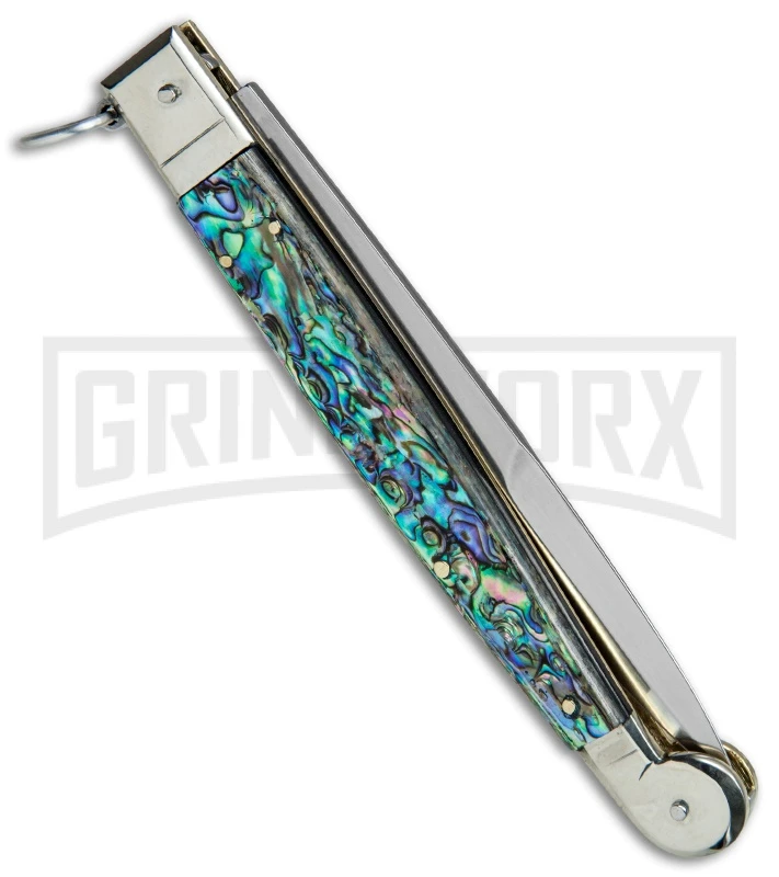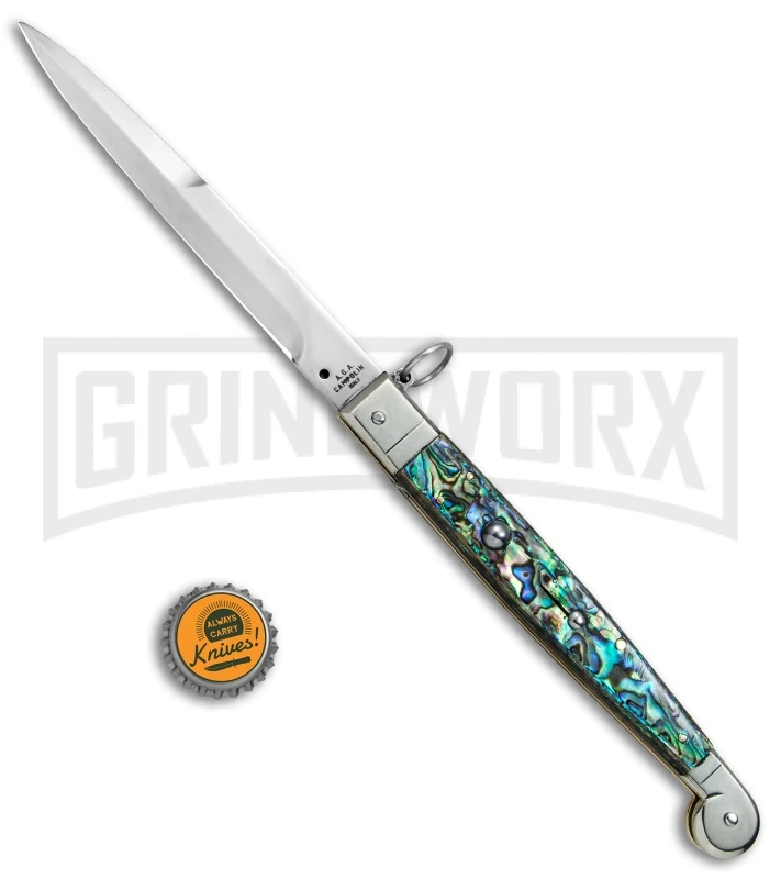 Be the first to review “A.G.A. Campolin 9″ Abalone Sicilian Ring Pull Automatic Knife – Bayonet” Cancel reply