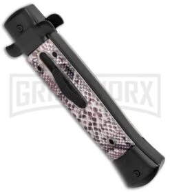 The Atomic OTF offers a rugged design with solid EDC construction. This model has a stainless steel recurve tanto blade with a plain edge. The handle has a rubberized texture for improved grip with a pocket clip for carrying comfort. Using the side mounted slide button will activate the double-action automatic feature for lightning fast blade deployment. A pommel glass breaker finishes off the tactical design.