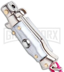 SKM Italian Stiletto Gray Automatic Knife Pink Keychain – Flat Grind