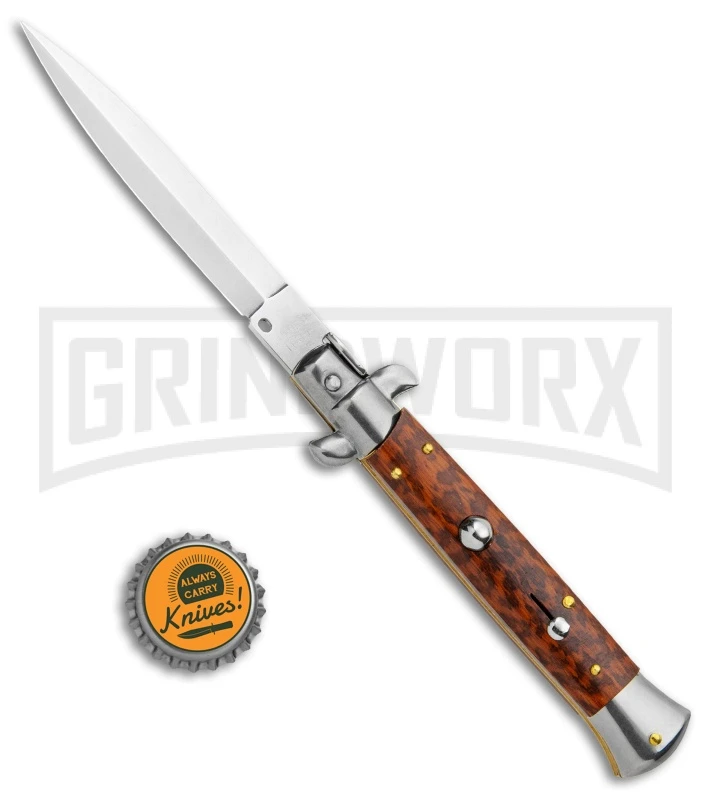 SKM 8″ Italian Stiletto Rosewood Automatic Knife – Flat Satin