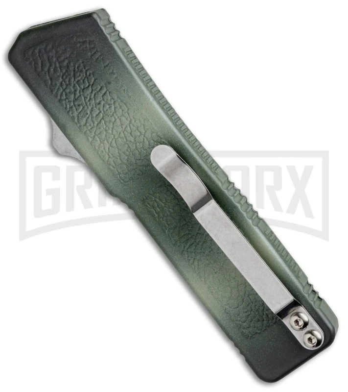 This model has a camo powder coated aluminum handle with a textured surface to facilitate good grip. The firing button is mounted on the side, making the Lightning slim and easy to carry. The blade is black finished stainless steel and marked “LIGHTNING” on the top.