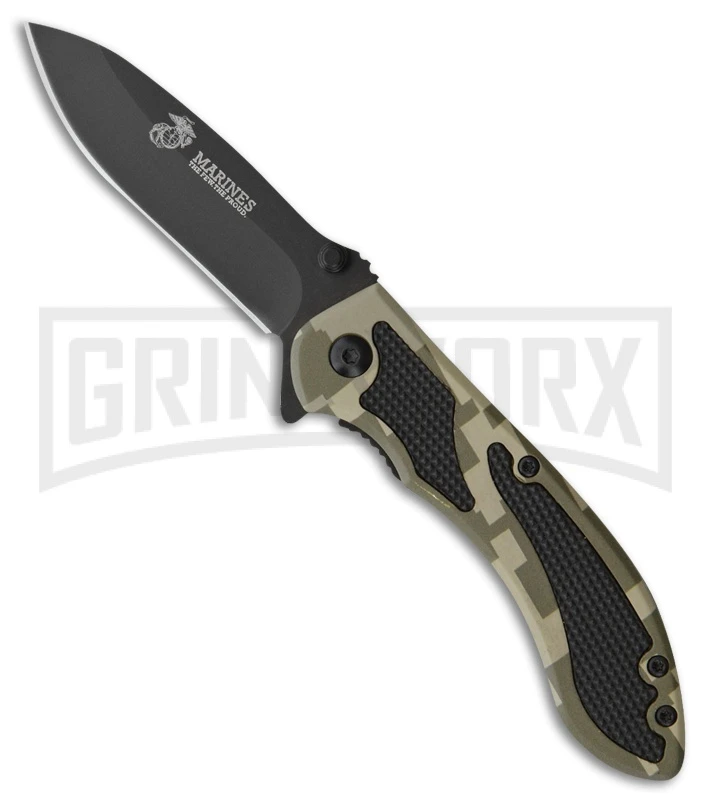 USMC Marines SGT Black G-10 Spring Assisted Knife – Black Serr
