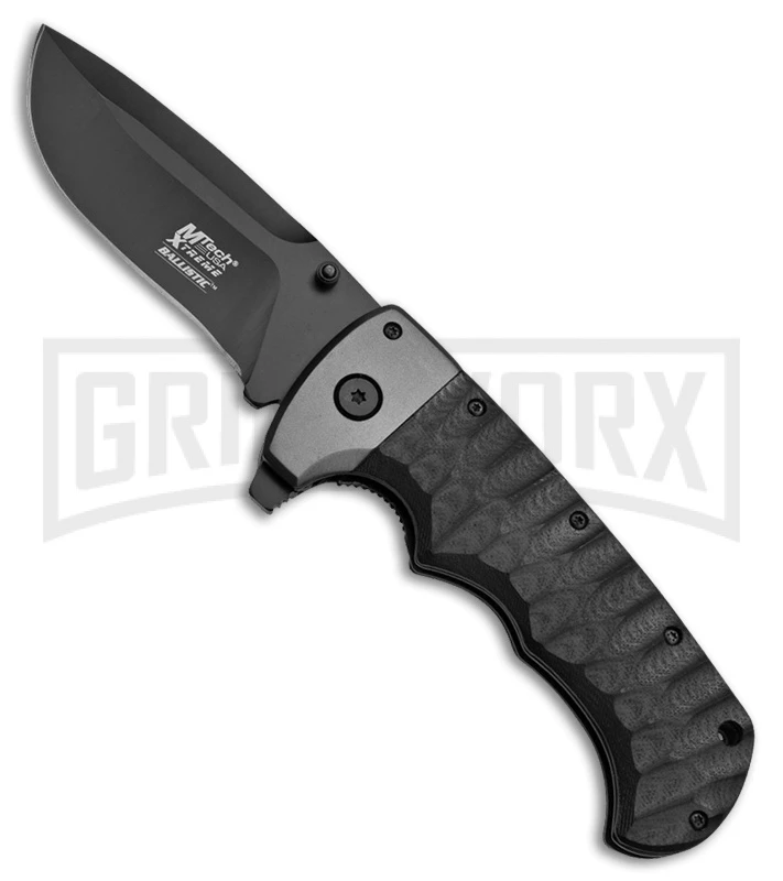 The M-Tech Xtreme Ballistic Sentinel is a spring assisted knife great for daily carry and useful for any and every project you tackle during the day. The black finished, stainless steel, spear point blade features dual thumb studs and a flipper. It has a textured black G-10 handle with a gray finished bolster. It has a liner lock and comes with a black finished pocket clip.