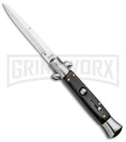 The Milano Stiletto offers a classic automatic knife design that’s easily affordable for anyone interested in Italian style knives. It’s built with a stainless steel bayonet blade and an acrylic handle with nickel silver bolsters. The push button release has fast action and a solid lock up. To unlock the blade, simply push down on the swivel bolster. Item is equipped with a sliding safety to protect against accidental release of the blade. The Milano Stiletto is a great way to get your collection started.