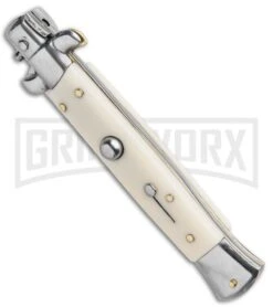 This Milano Stiletto comes in the classic Italian style. It has a razor sharp bayonet blade made from 440 stainless steel. The handle features brown acrylic handle scales and a tip-up carry pocket clip. Add this great looking automatic to your collection today!