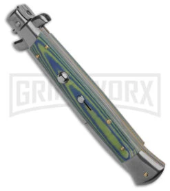 This Milano Stiletto comes in the classic Italian style. It has a razor sharp bayonet blade made from 440 stainless steel. The handle features red wood handle scales and a tip-up carry pocket clip. Add this great looking automatic to your collection today!