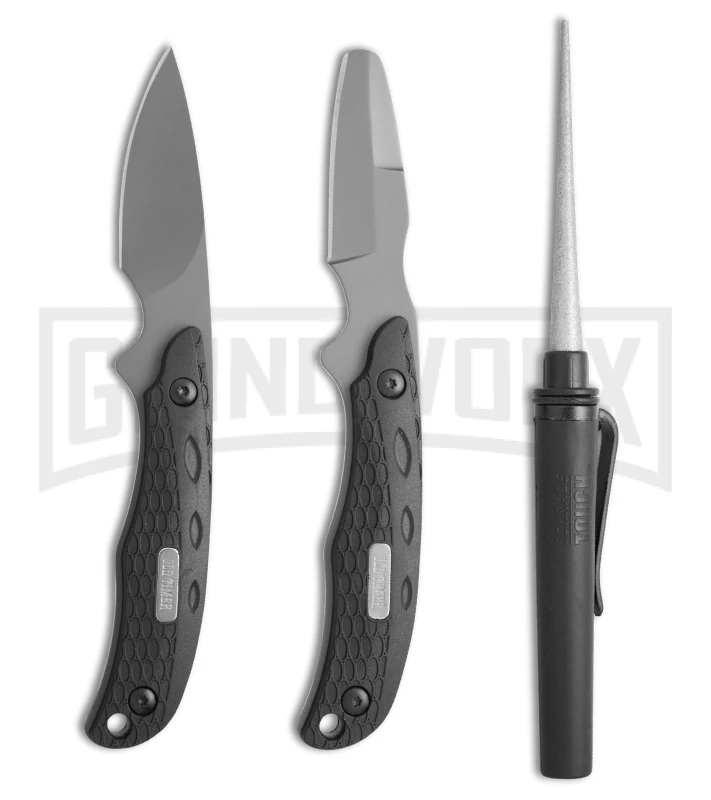 The Old Timer Copperhead Caping/Skinning set is here to kick off the hunting season. Each knife features a full-tang 7Cr17MoV stainless steel blade with a durable Ti-Nitride coating. The handles have rubber overmolded scales to offer a secure and steady grip during use. This kit includes a sharpening rod and a woven sheath to carry both knives side by side.