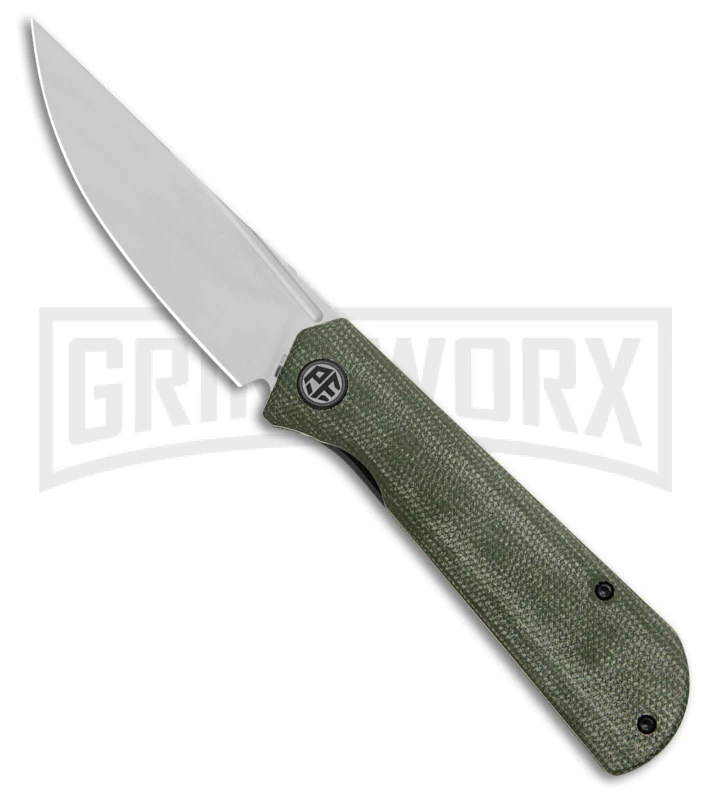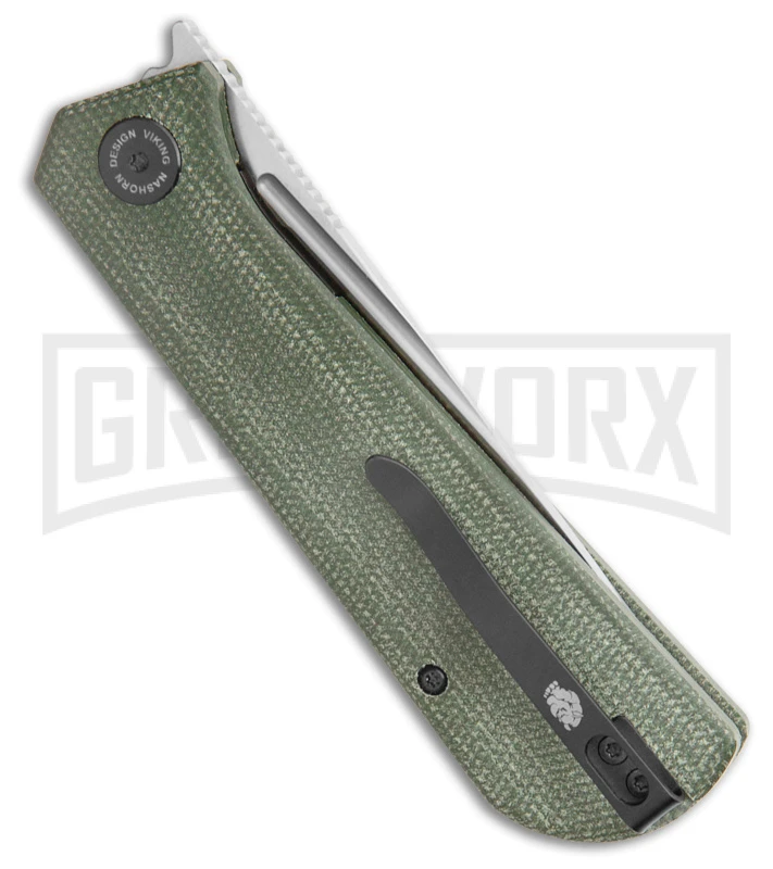 This model of the Viking has a durable green micarta handle and a satin drop point blade.