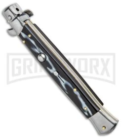 Frank B. 11″ Italian Stiletto Sim Dark Horn Automatic Knife – Satin
