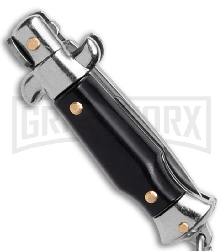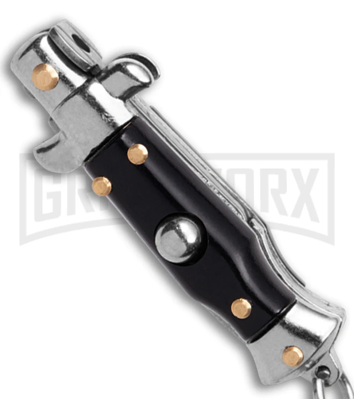 Super cool key chain stilettos really work. Made in Italy. Black acrylic handles. These are very small! The perfect gift idea for anyone who loves Italian knives.