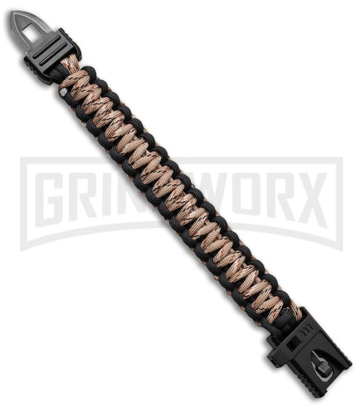 The Tac-Force SureFire is a fixed blade knife for hunting and camping. The 3Cr13 stainless steel blade has a black finish with a drop point style and plain edge. This is an injection molded nylon gray handle with rubber overmold for a secure hold. This item comes with a drop leg nylon sheath and paracord bracelet.