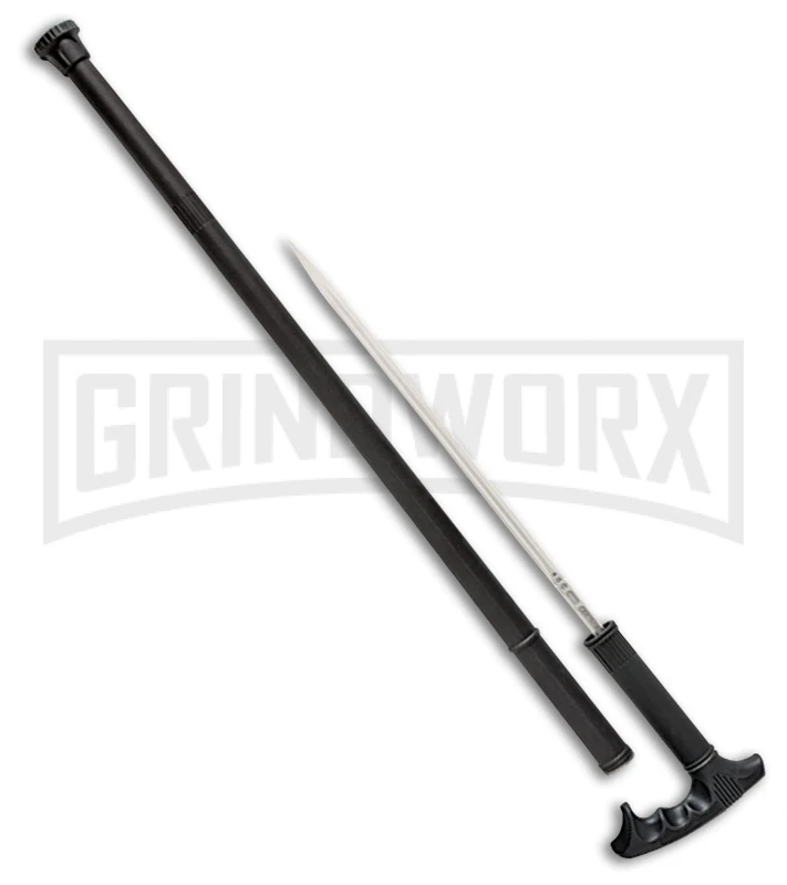 The United Cutlery Honshu Sword Cane is a great for taking on the go, and is always there in case you need to defend yourself. The 2Cr13 stainless steel blade has a satin finish and is connected to a partial crook GFN black handle. The blade is concealed inside the aluminum shaft that has a rubber tip.